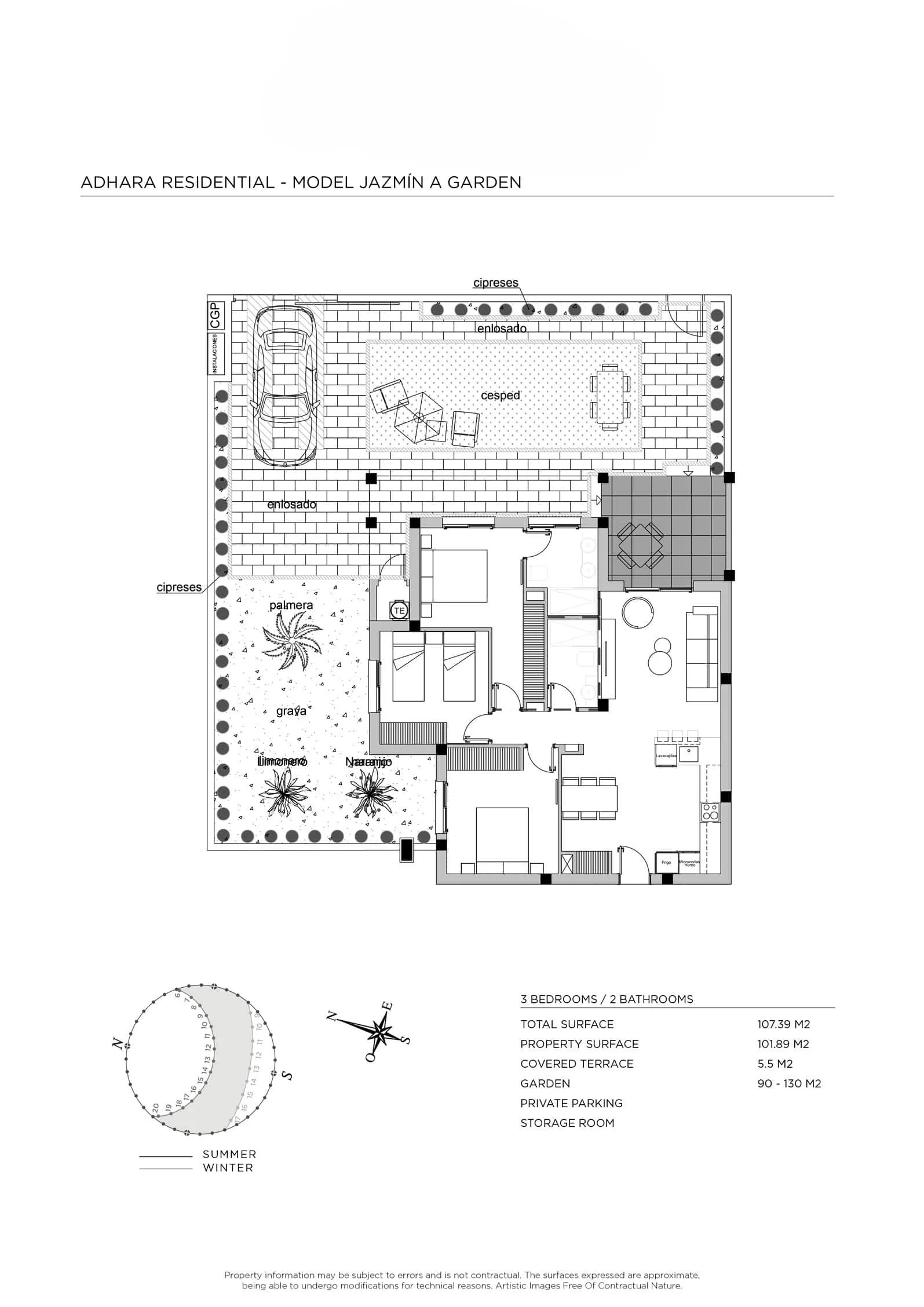 Moderno apartamento en planta baja de 3 dormitorios y 2 baños, con una superficie total de 107,39 m², diseñado para ofrecer comodidad y funcionalidad. El luminoso salón con cocina abierta y zona de comedor crea un amplio espacio con acceso directo a una terraza y a un jardín privado de 70 m², ideal para disfrutar del aire libre. La vivienda cuenta con acabados modernos, una distribución bien pensada y alta eficiencia energética (clase B). También dispone de trastero y plaza de aparcamiento privada.