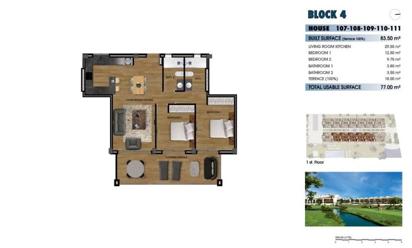 - Commodités: Climatisation, Électroménager, Espaces verts, Piscine, Résidence sécurisée, Terrasse