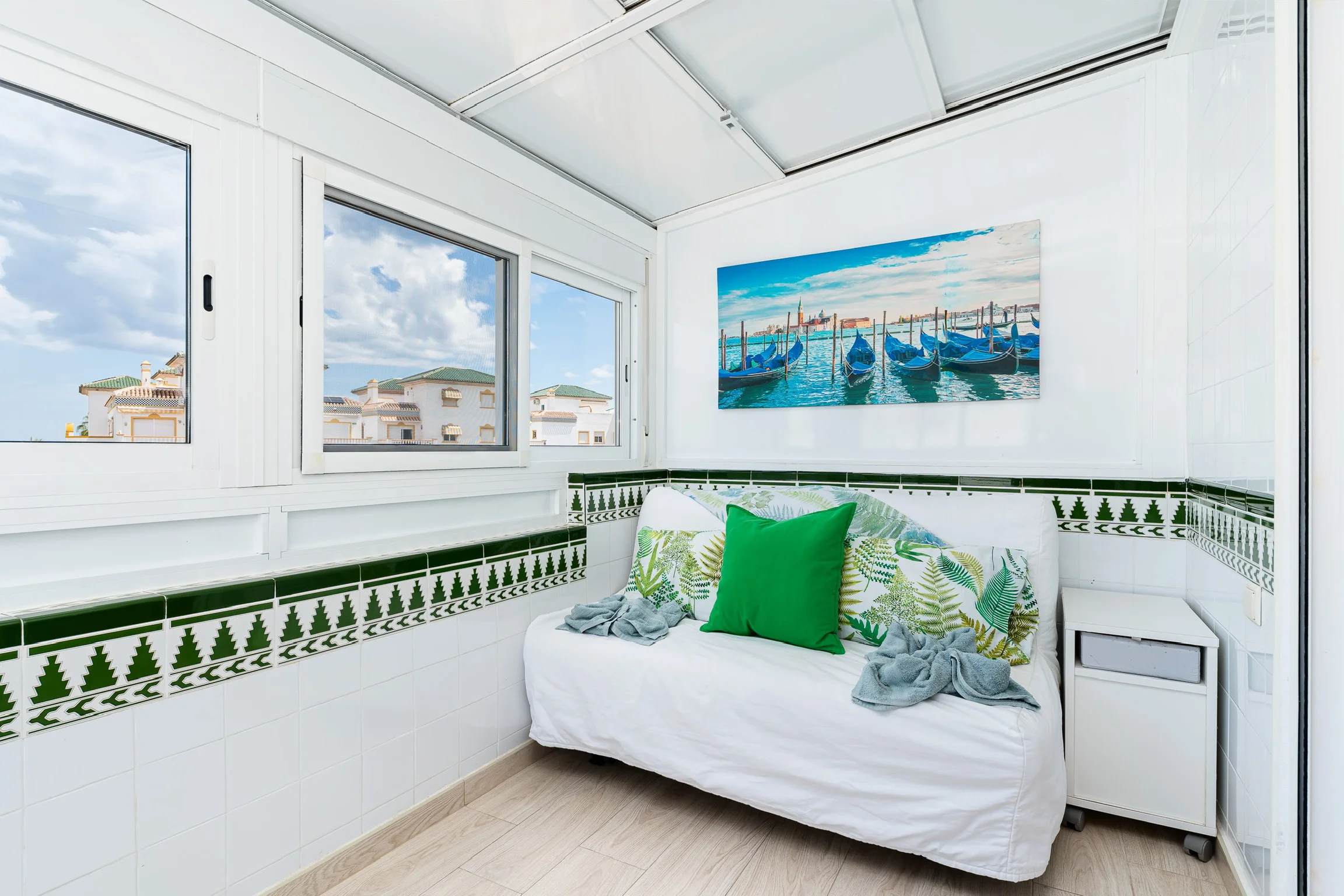 Zaledwie około 600 metrów dzieli bungalow od szerokiej, piaszczystej plaży La Mata, jednej z najpiękniejszych w regionie, z długą promenadą idealną na spacery o zachodzie słońca. W bezpośredniej okolicy znajdują się restauracje, bary, sklepy i kawiarnie, co pozwala w pełni korzystać z uroków wakacyjnego życia bez potrzeby dojazdów.