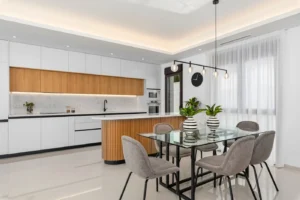 Nowoczesna willa z 3 sypialniami i 2 łazienkami o łącznej powierzchni 174 m², położona na działce o powierzchni 500 m², zaprojektowana z myślą o komforcie i wysokiej jakości życia. Jasne i przestronne wnętrze obejmuje salon z jadalnią oraz otwartą kuchnią, tworząc funkcjonalną strefę dzienną z bezpośrednim wyjściem na taras o powierzchni 34 m² i ogród. Nieruchomość oferuje nowoczesne wykończenie, duże przeszklenia oraz przemyślany układ pomieszczeń. Do dyspozycji jest prywatny basen (8x4 m), prywatny garaż oraz przestronne solarium o powierzchni 150 m² z pergolami (44 m²), idealne do relaksu i spędzania czasu na świeżym powietrzu.