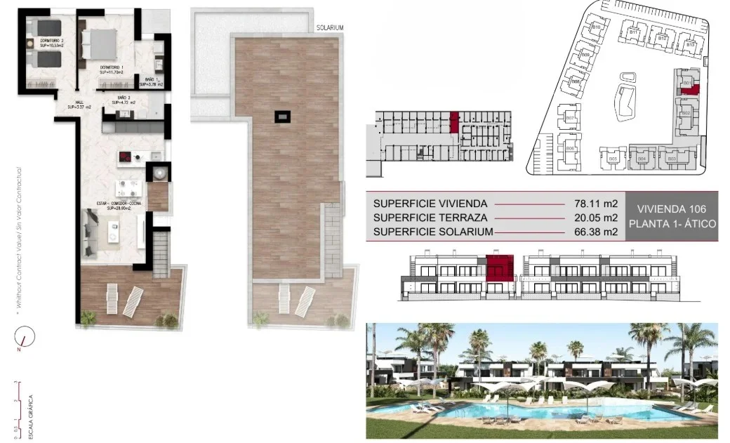 Elegant Top-Floor Bungalow with Private Solarium, Parking and Pool – Ciudad Quesada