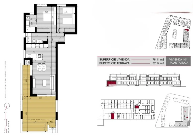 A modern ground-floor bungalow designed for comfort and functionality, offering 2 bedrooms and 2 fully fitted bathrooms with a total built area of 78.11 m². The interior is bright and carefully arranged, featuring a spacious living room connected to the dining area and an open-plan kitchen. The kitchen includes upper and lower cabinets, a durable worktop, and a full set of appliances for everyday use. The living area comes fully furnished with a lounge area, dining space, and TV. The bedrooms are equipped with beds, mattresses, headboards, bedside tables, textiles, and lighting. The bathrooms are fully finished and include vanity units, mirrors, showers with glass enclosures, and electric underfloor heating. The price also includes electric blinds with remote control, air conditioning for cooling and heating, and a complete furniture package with lighting, curtains, textiles, kitchenware, and small appliances. The property features a large private terrace of 37.11 m², perfect for outdoor living. An underground parking space and storage room are included in the price.