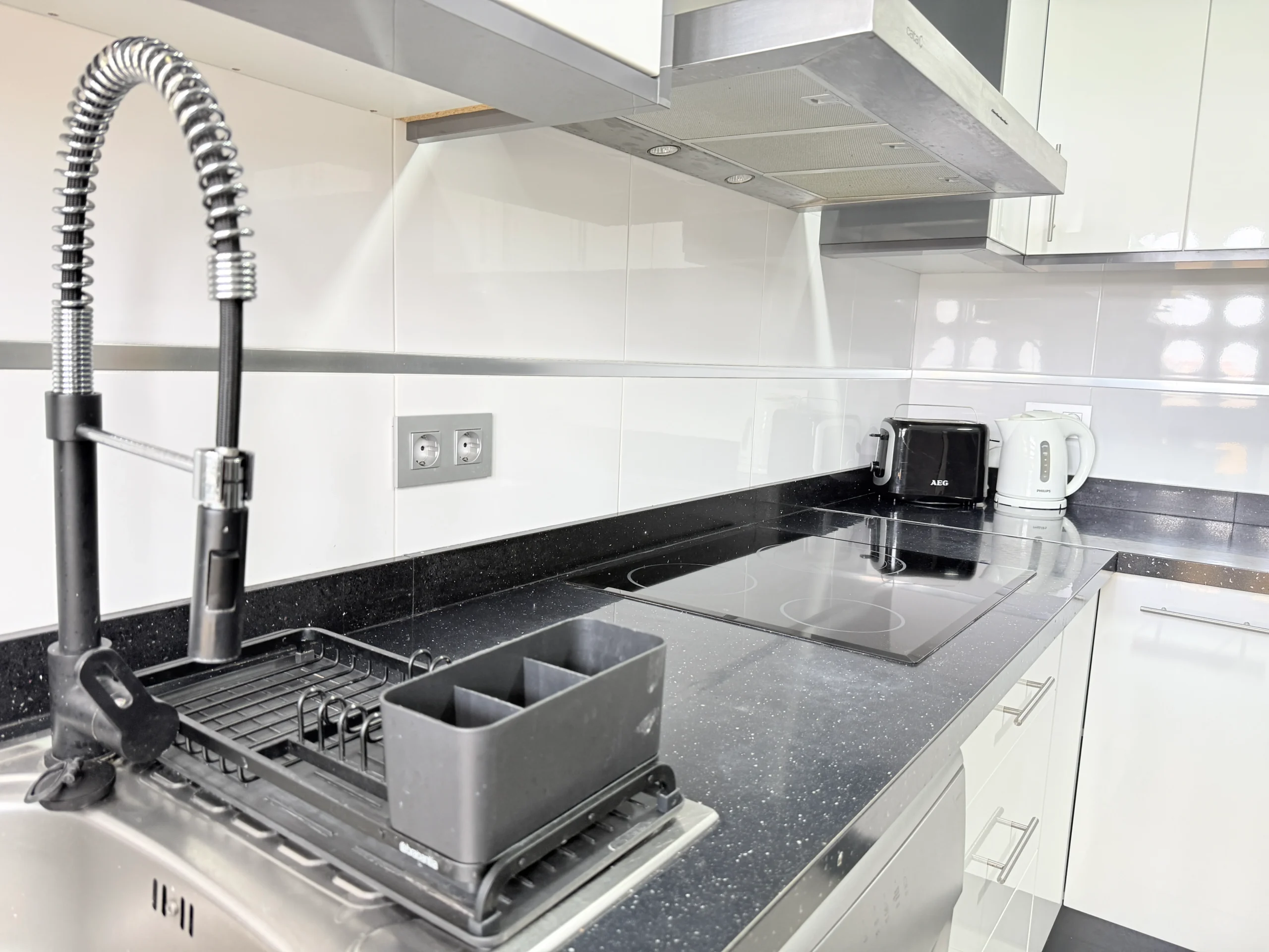 The property features two modern bathrooms and a fully equipped kitchen with high-quality appliances.